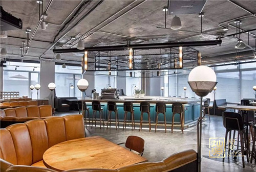 在這個飯?zhí)醚b修中,天花板的各種橫欄設計,走的是工業(yè)范,給原有的簡潔風格平添上一種高級的時尚感,高格調的意境就這樣被點綴出來了。飯?zhí)玫牟AЦ舭褰o原有的飯?zhí)迷鎏砹撕芏嗫臻g的延伸性。