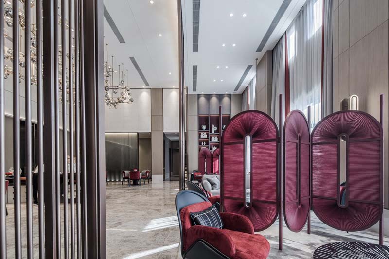 以金科博翠山南寧售樓部設(shè)計(jì)裝修項(xiàng)目為例:整體選擇以現(xiàn)代簡(jiǎn)約風(fēng)格為設(shè)計(jì)基礎(chǔ),80*80光可鑒人的米色瓷磚是洽談區(qū)地面的主要鋪設(shè)材料,這樣的尺寸在視覺(jué)上更具高級(jí)質(zhì)感;三米左右的層高設(shè)計(jì),搭配銀色造型吊燈,既減少了空間疏離感,又能提升視覺(jué)美觀效果;搭配自上而下金屬邊框線條造型的玻璃屏風(fēng),整體自帶輕奢質(zhì)感的氛圍設(shè)計(jì),側(cè)面彰顯品牌實(shí)力,增加業(yè)主可信賴心理,對(duì)于提升銷售業(yè)績(jī)也有極大幫助。